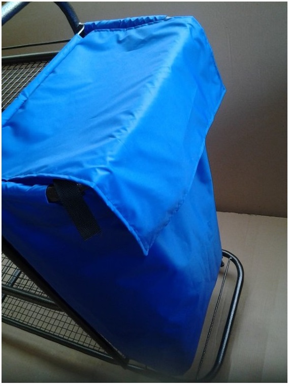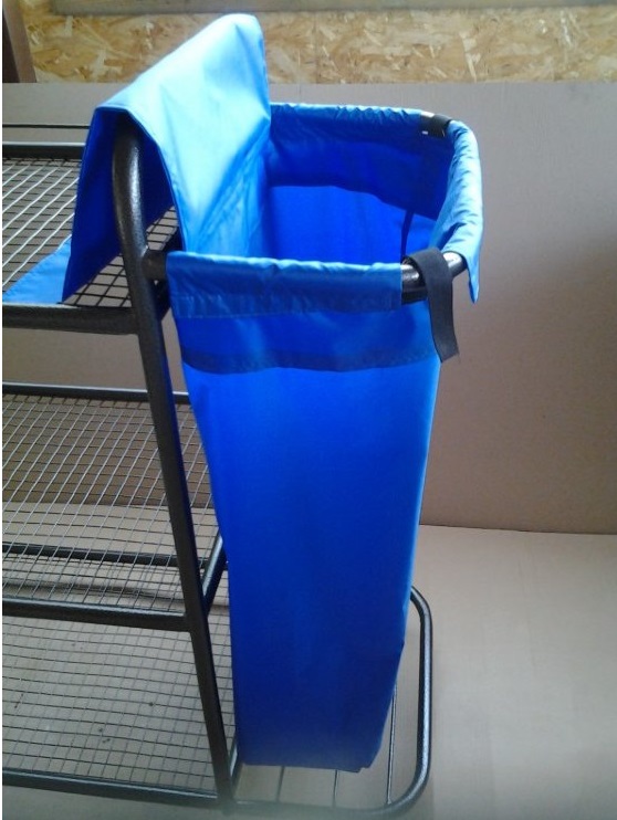 Мешок из высокопрочного нейлона на 110 л из водонепроницаемой ткани. С открытой стороны- крышка в виде клапана. Мешок крепится к тележке с помощью липучек.
