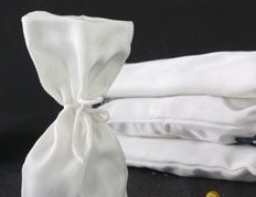 Вы можете выбрать один из дизайнов мешочков, представленных у нас на сайте, либо же разработать свой. Наши дизайнеры с радостью подберут для вас дизайн мешочка. В стандартном варианте мешочек поставляется с завязками в цвет изделия. Ткань выглядит довольно необычно, у неё интересное плетение.