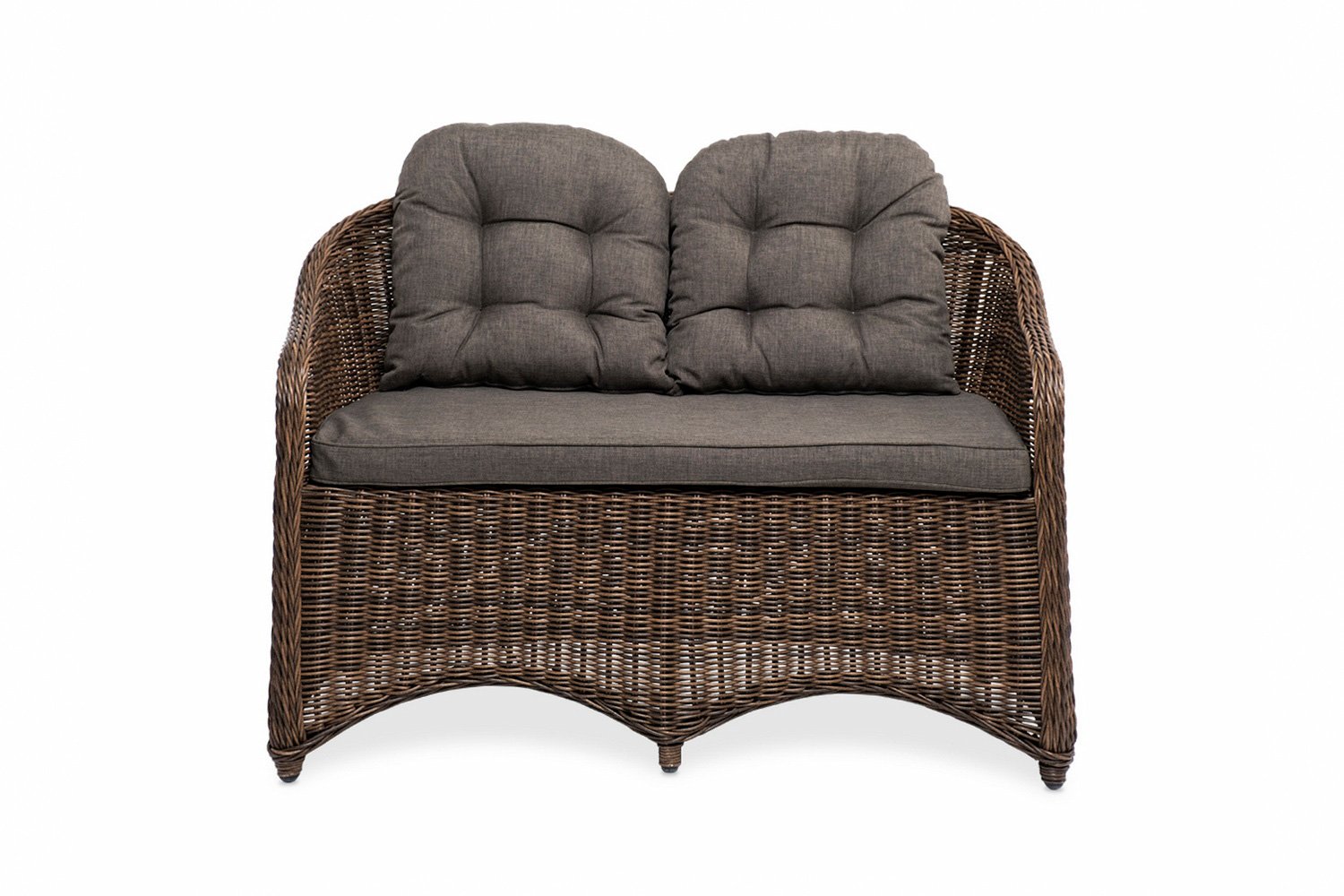 Коллекция садовой мебели Равенна от 4SiS – это всегда необычные формы и привлекательный вид мебели. Двухместный диван из этой коллекции также выглядит необычно, и позволяет своим хозяевам создать необычное обустройство места для отдыха на природе. Диван занимает пространство 118х81.5х68 см, у него есть подлокотники и жесткая, чуть отклоненная спинка. Цвет отделки – коричневый.
