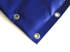 В каталоге сайта полотно с ПВХ покрытием, представлено в размерах: 650 (изолон 5 мм), 900 (изолон 5 мм), 1100 (изолон 5 мм), 1400 (изолон 10 мм). Такой вид изделия считается самым прочным и дорогим из представленных термоматов. Тент синего цвета имеет трехслойное строение: изолон, с двух сторон покрытый прочной тканью ПВХ, плотностью 600, 650, 850 г/м².