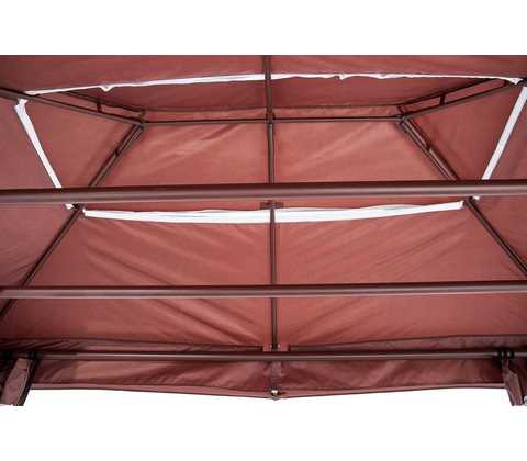 Мы хотим предложить вам приобрести тент, предназначенный для садовых качелей-беседки Сакура. Данный тент выполнен в шоколадном цвете, в верхней части у него есть вентиляция. Данный тент подойдёт для длины садовых качелей 287 см, ширины 195 см, высоты 250 см. Тент изготовлен из такой ткани, как Оксфорд 240.